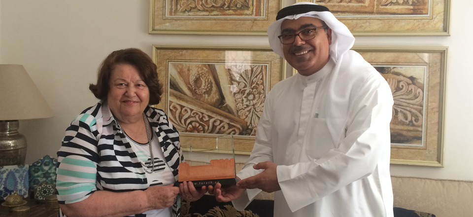 Widad Kawar receiving the Directorate of Heritage Award by Mr. Abdulaziz Almusallam Alkhaaldi, the Director of Heritage & Cultural Affairs of the Government of Sharjah. Mr. Abdulaziz also wrote a beautiful article about his experience with Widad Kawar and his feedback on her work.  http://alroeya.ae/2014/09/21/181200/